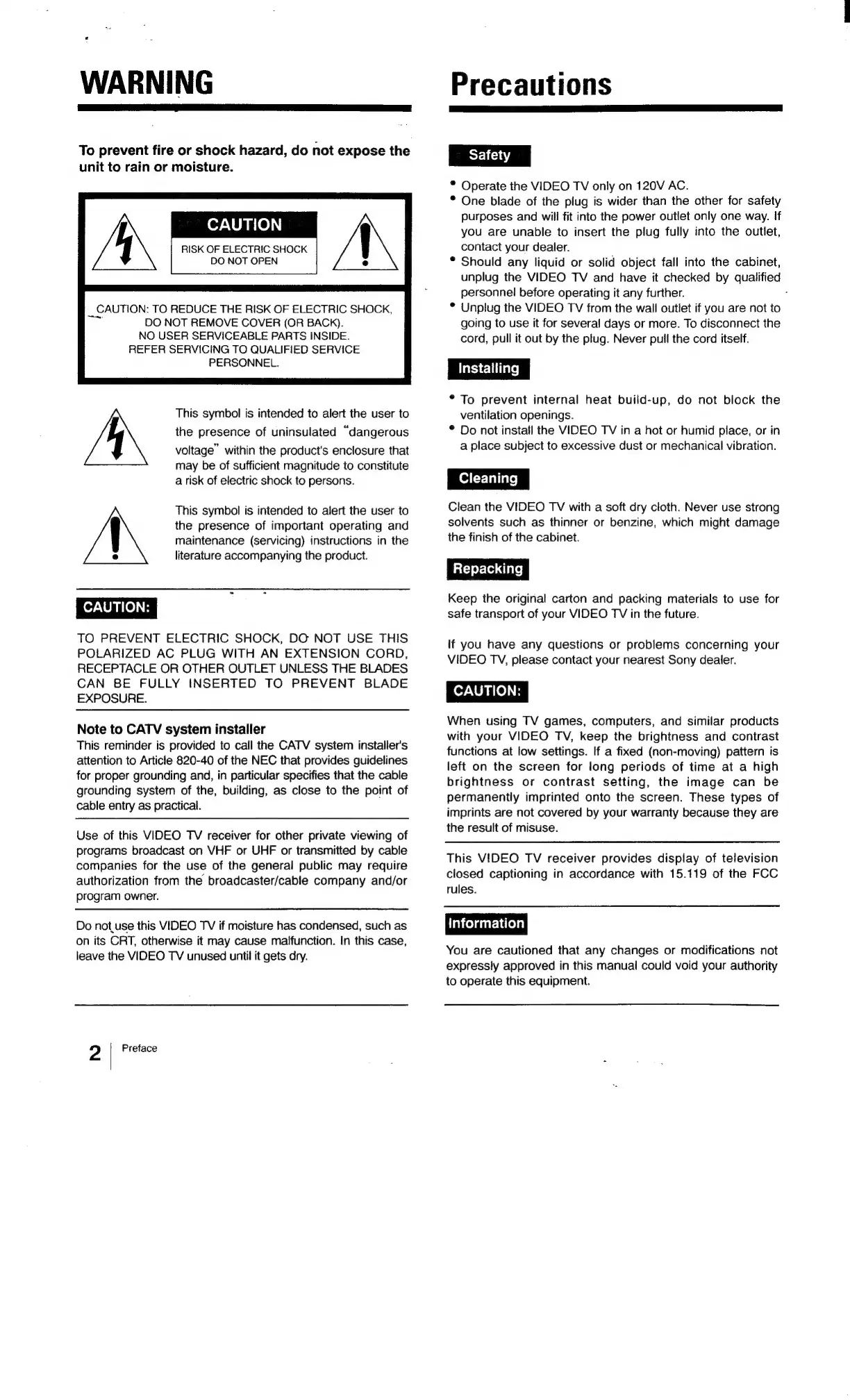Sony Trinitron KV-13VM20 - Default Chapter; Cece Ceeceeereeetteneseetietaeeneenens