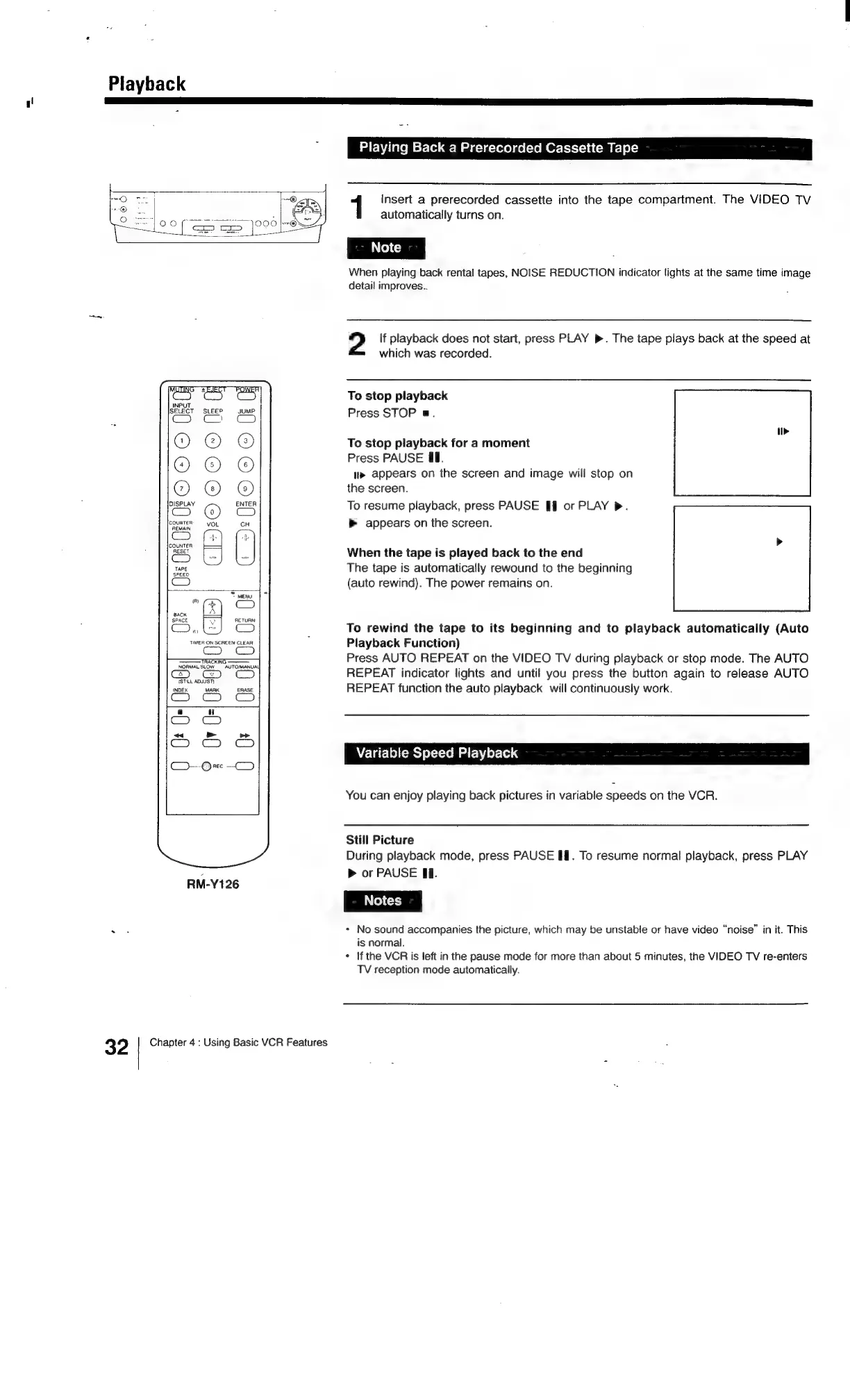 Sony Trinitron KV-13VM20 - Chapter 4: Using Basic VCR Features; Piaying Back a Prerecorded Cassette Tape; CC Cccsseesecesseeesteeeeneeeeeees