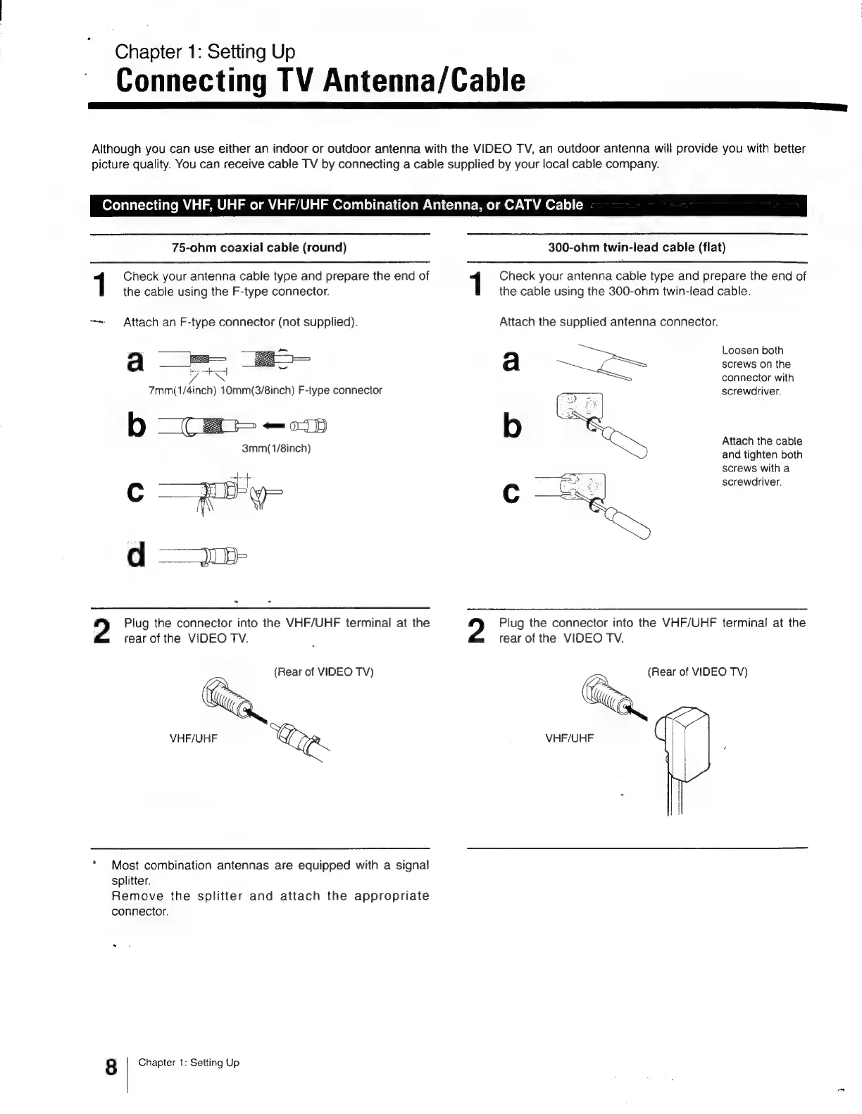 Sony Trinitron KV-13VM30 - Chapter 1: Setting up; Connecting TV Antenna;Cable