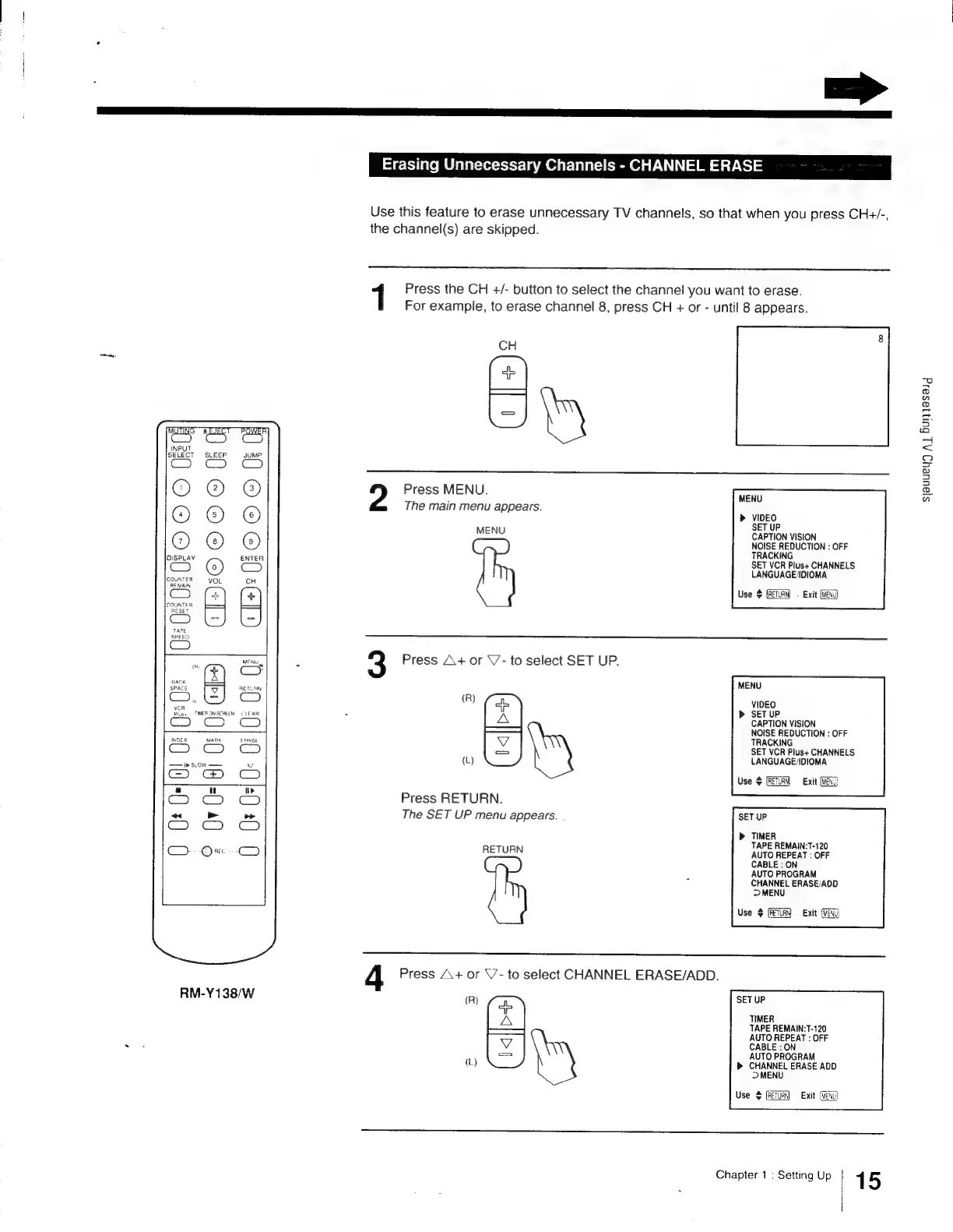 Sony Trinitron KV-13VM30 - Erasing Unnecessary Channels - CHANNEL ERASE