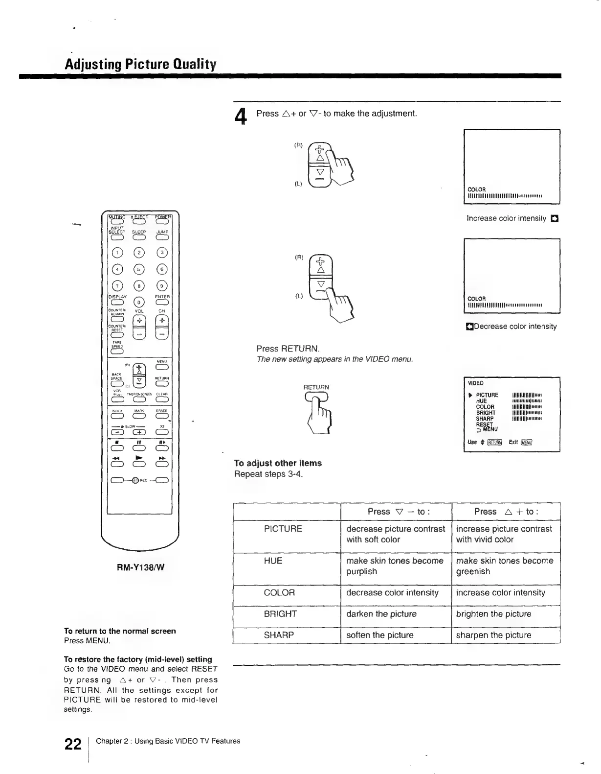 Sony Trinitron KV-13VM30 - Adjusting Picture Quality 0.0