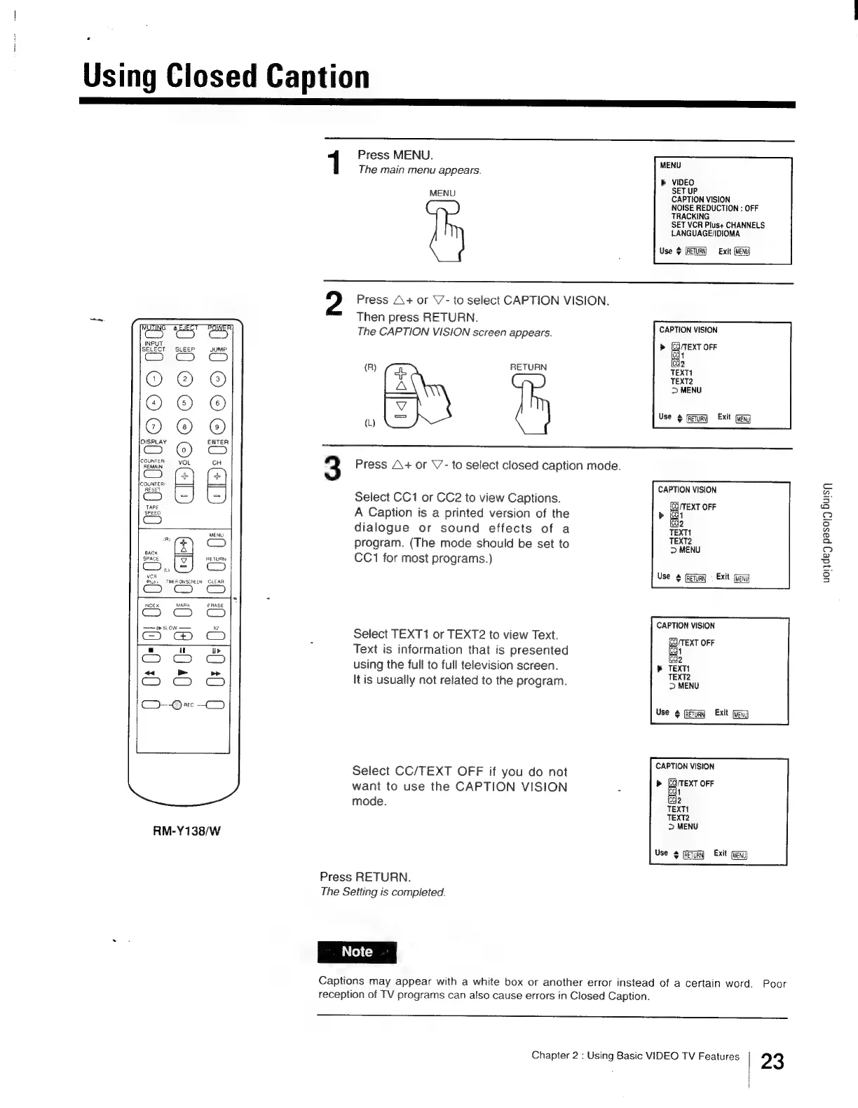 Sony Trinitron KV-13VM30 - Using Closed Captions Osc. Insicinis Scituncdetaiaenneiia Acute