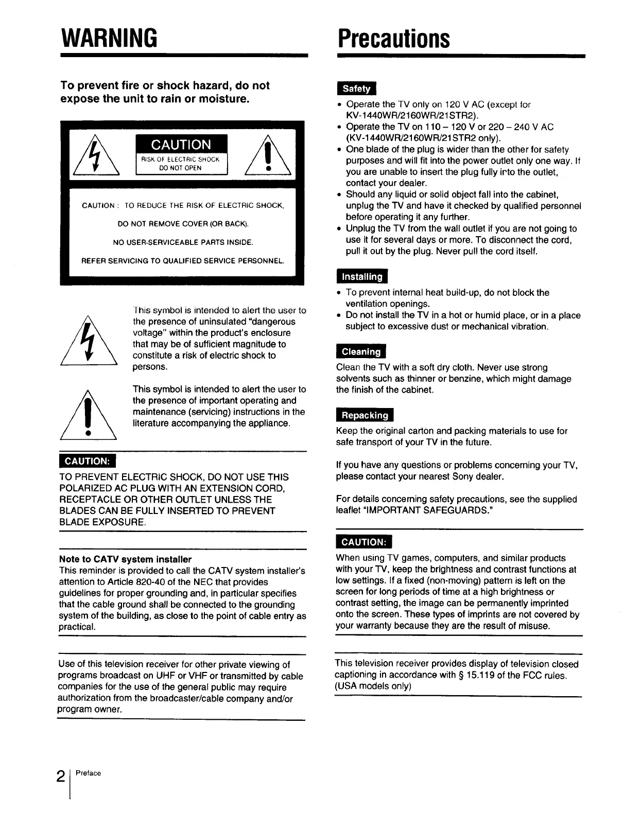 • Operate the TV only on 120 V AC (except |or