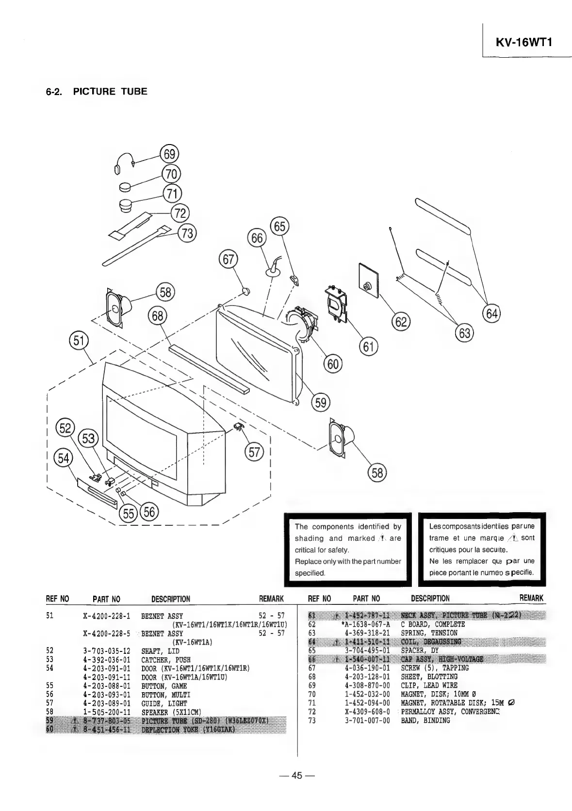 Sony TRINITRON KV-16WT1 - Picture Tube Assembly