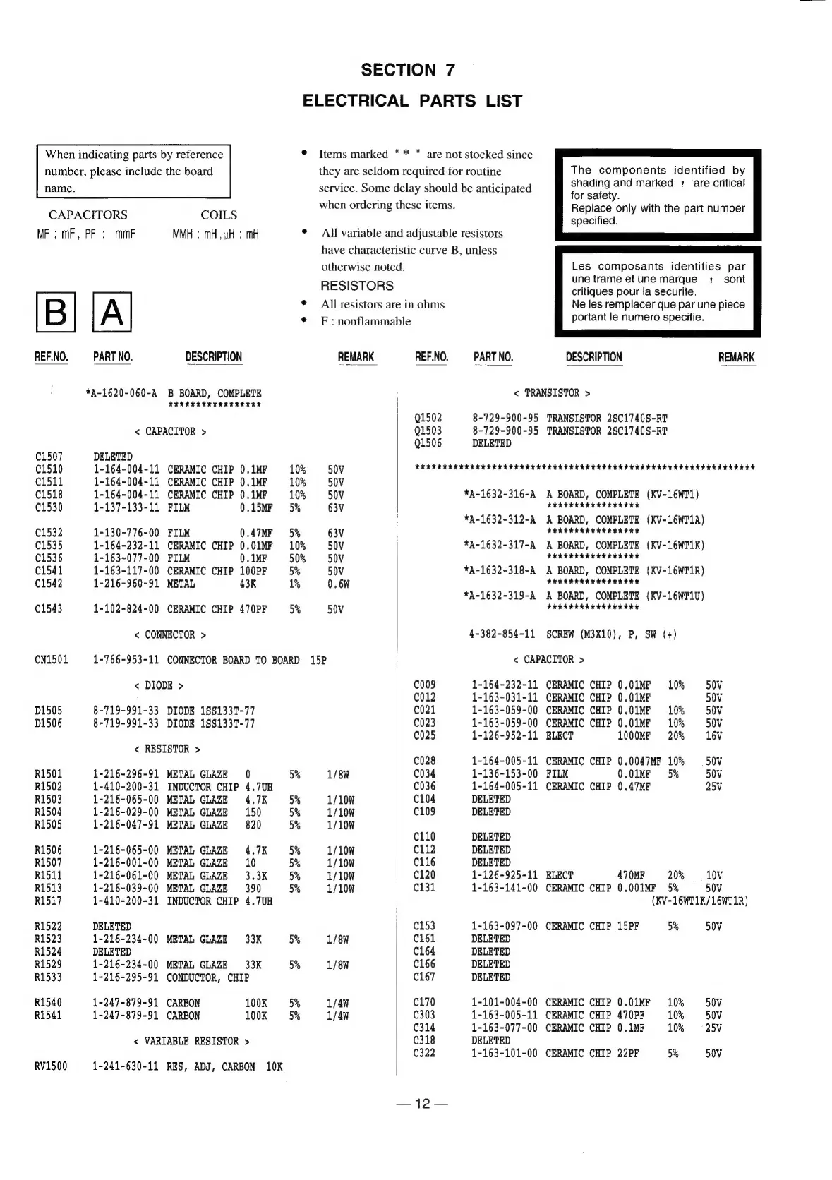 Sony TRINITRON KV-16WT1 - 7 Electrical Parts List