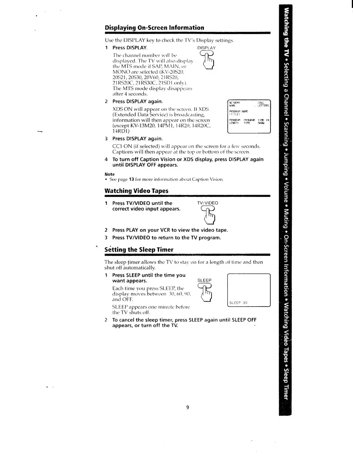 Sony TRINITRON KV-20M20 - Displaying On-Screen Information; Setting the Sleep Timer