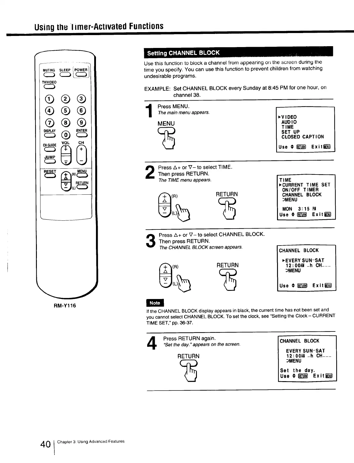 you cannot select CHANNEL BLOCK. To set the clock, see "Setting the Clock - CURRENT