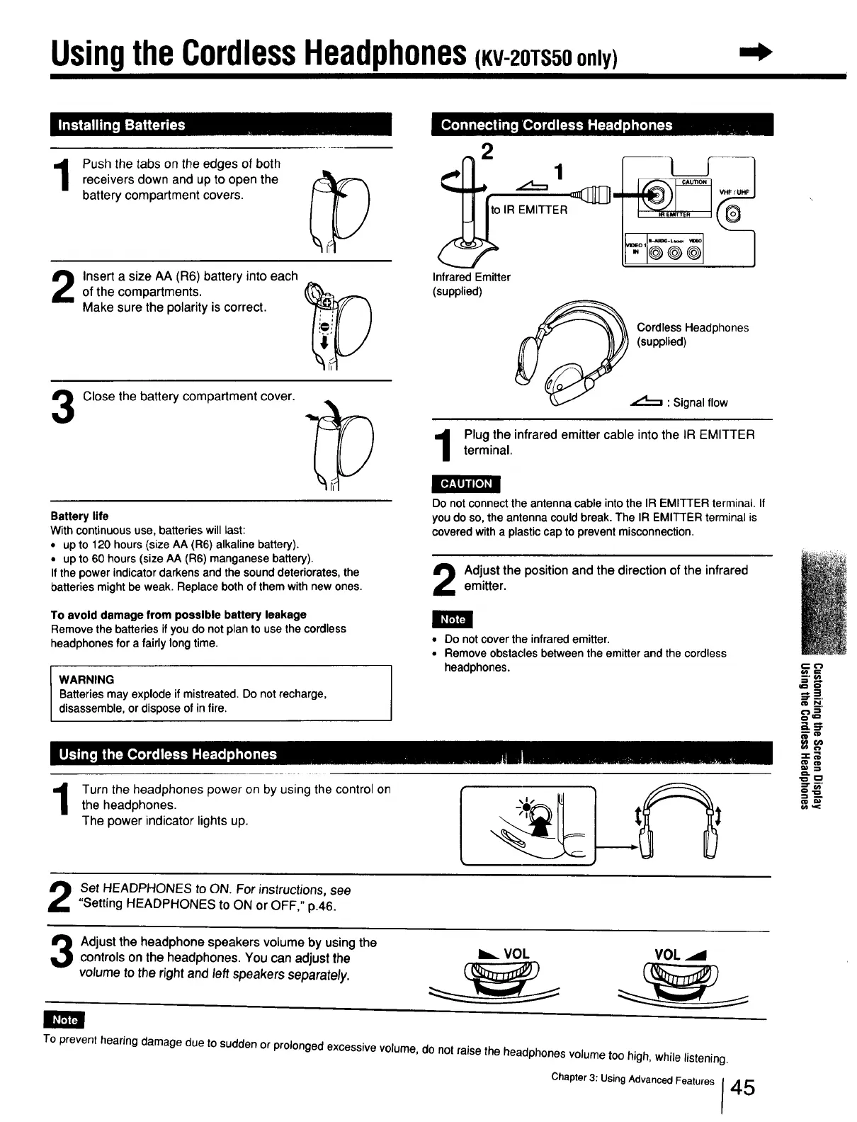 UsingtheCordlessHeadphones(KV-2OTS50only)