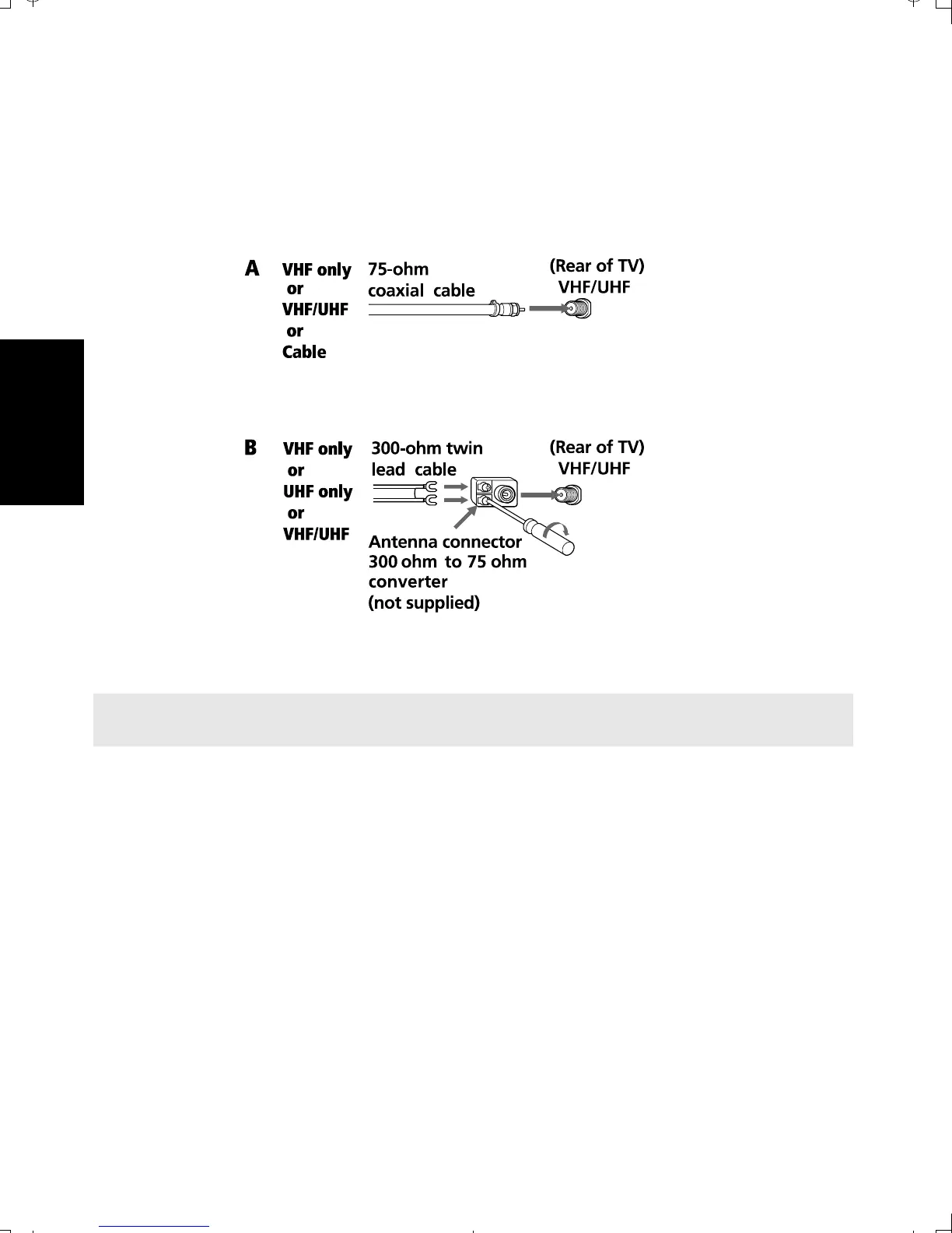 Use this to connect the TV to a dipole antenna, also known as “rabbit ears” antenna