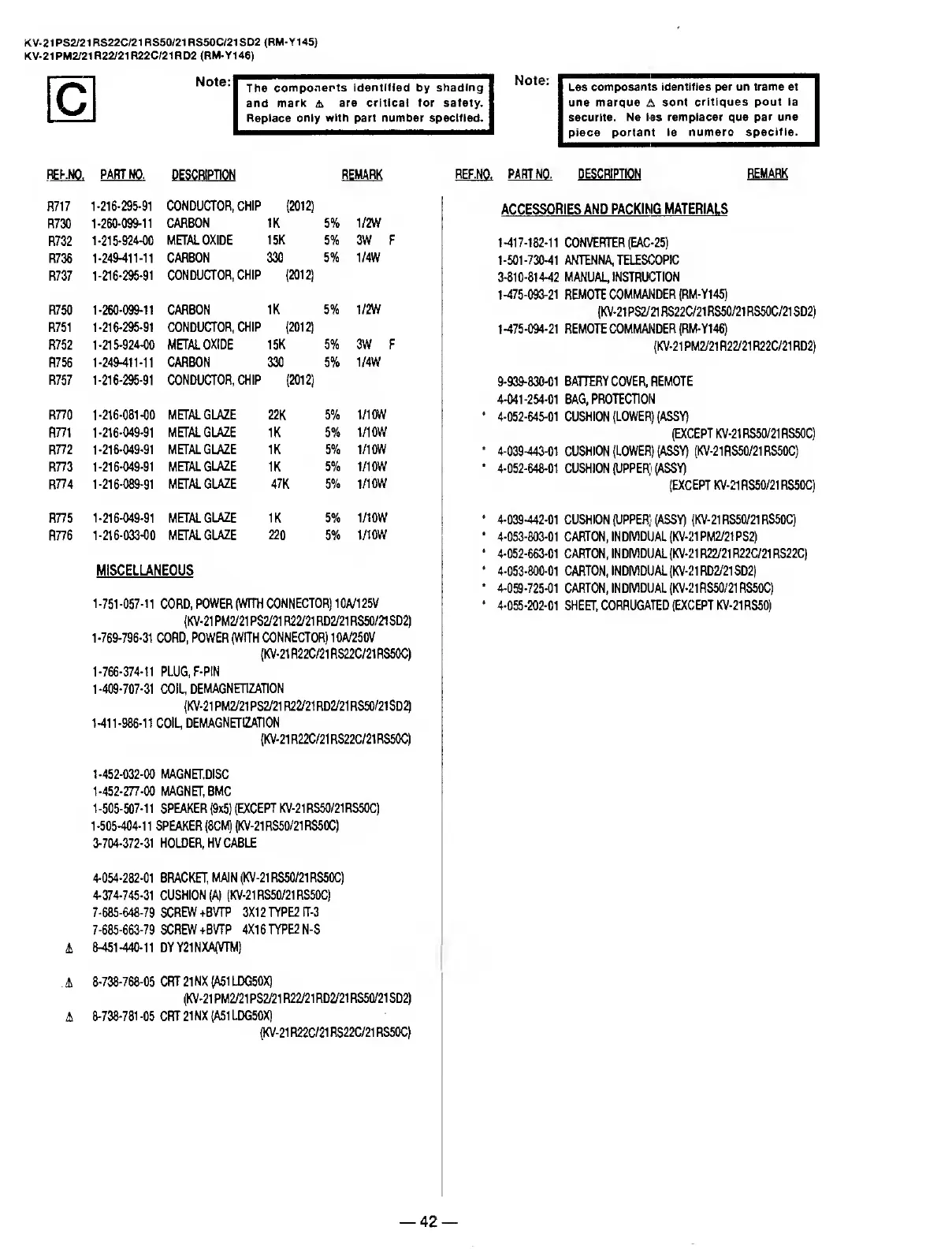KV-21PS2/21RS22C/21RS50/21RS50C/21SD2