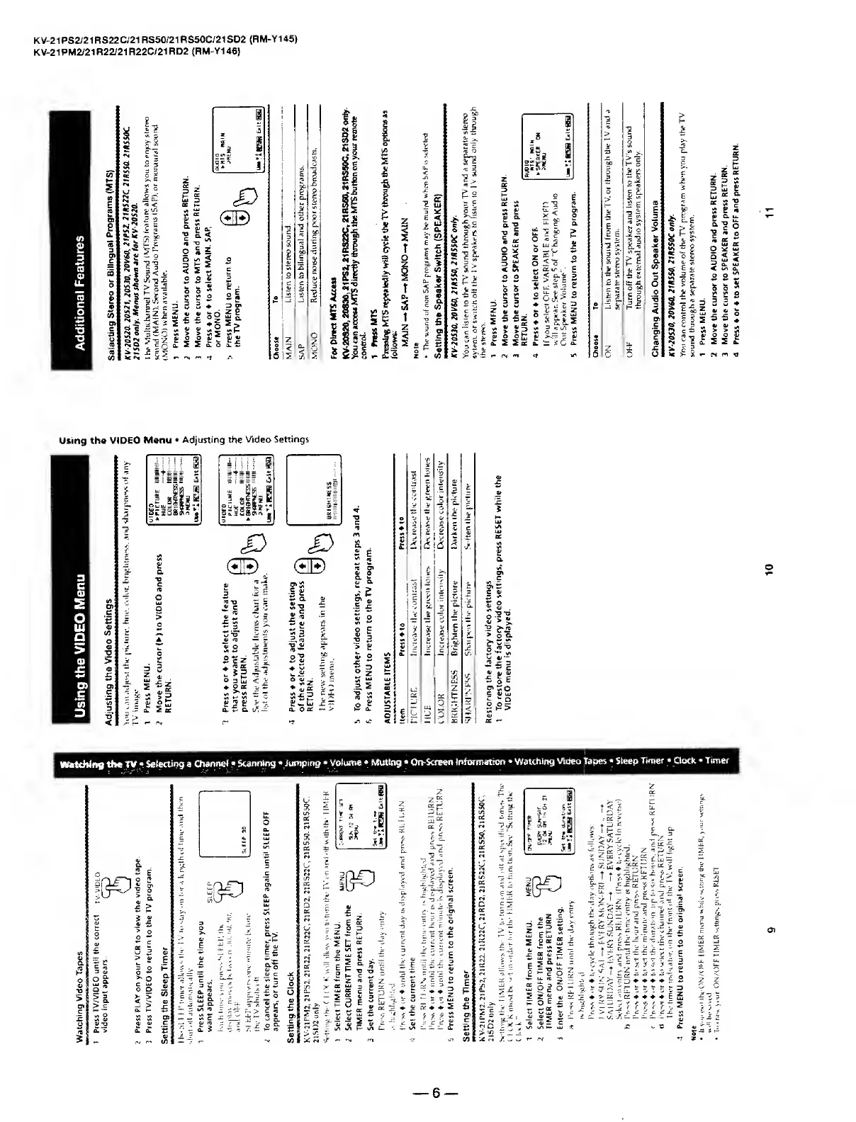 Sony TRINITRON KV-21PM2 - Using the VIDEO Menu; Additional Features; Setting the Sleep Timer; Setting the Clock