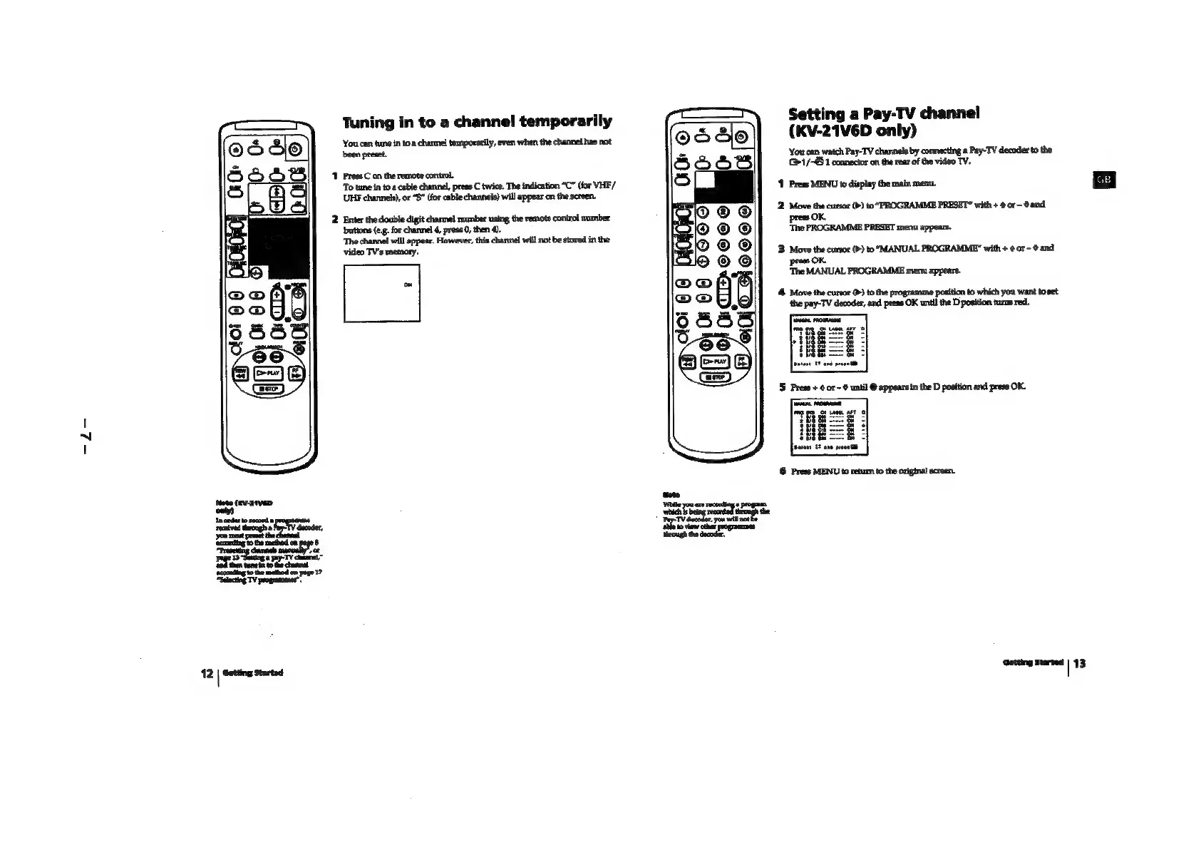 Sony TRINITRON KV-21V5A - Tuning in to a Channel Temporarily