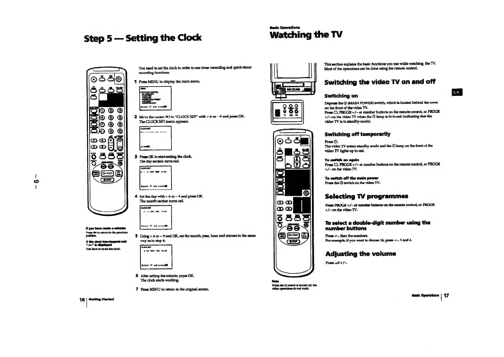 Sony TRINITRON KV-21V5A - Step 5 - Setting the Clock; Watching the TV; Adjusting the Volume