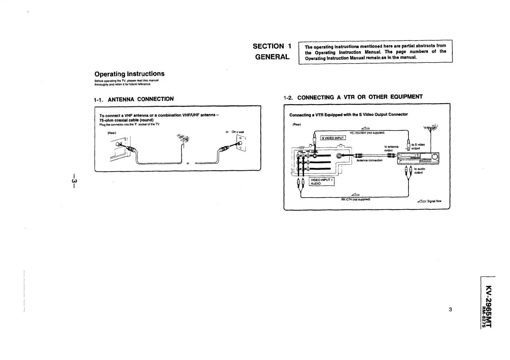 Sony TRINITRON KV-2565MT - General Information; Operating Instructions Overview; Antenna Connection; Connecting VTR and Other Equipment