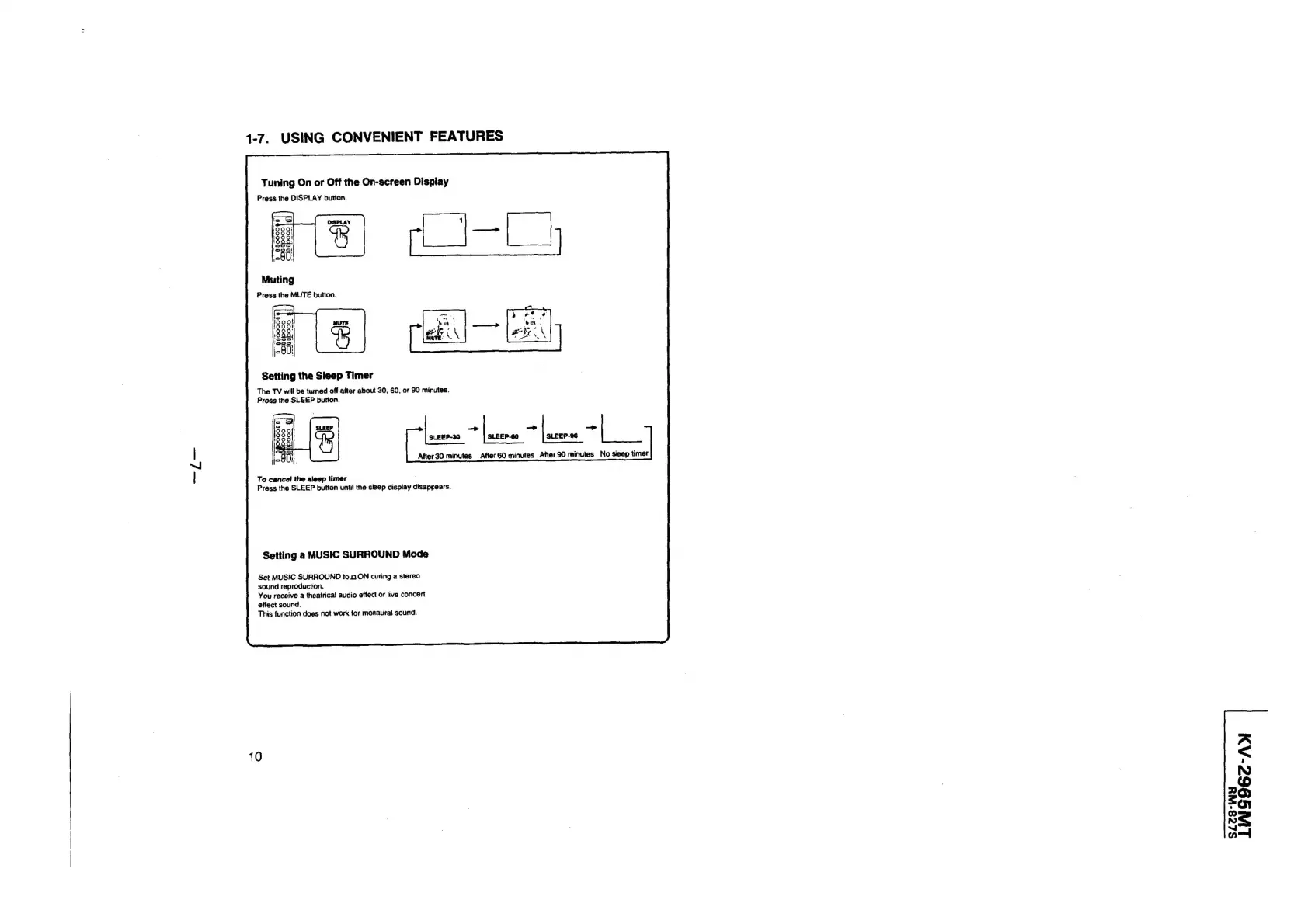 Sony TRINITRON KV-2565MT - Convenient Features; On-screen Display Control; Muting Audio; Sleep Timer Setting