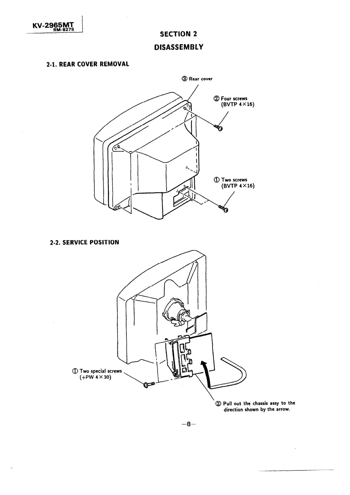 Sony TRINITRON KV-2565MT - Disassembly Procedures; Rear Cover Removal; Service Position