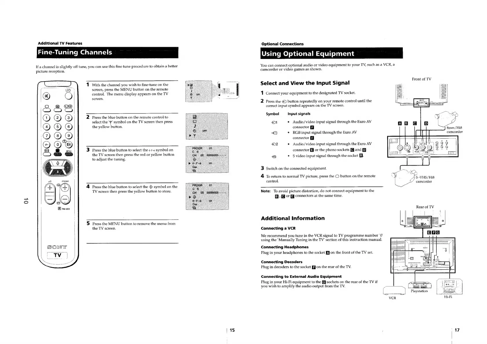 Sony TRINITRON KV-25C5A - Fine-Tuning Channels; Optional Connections
