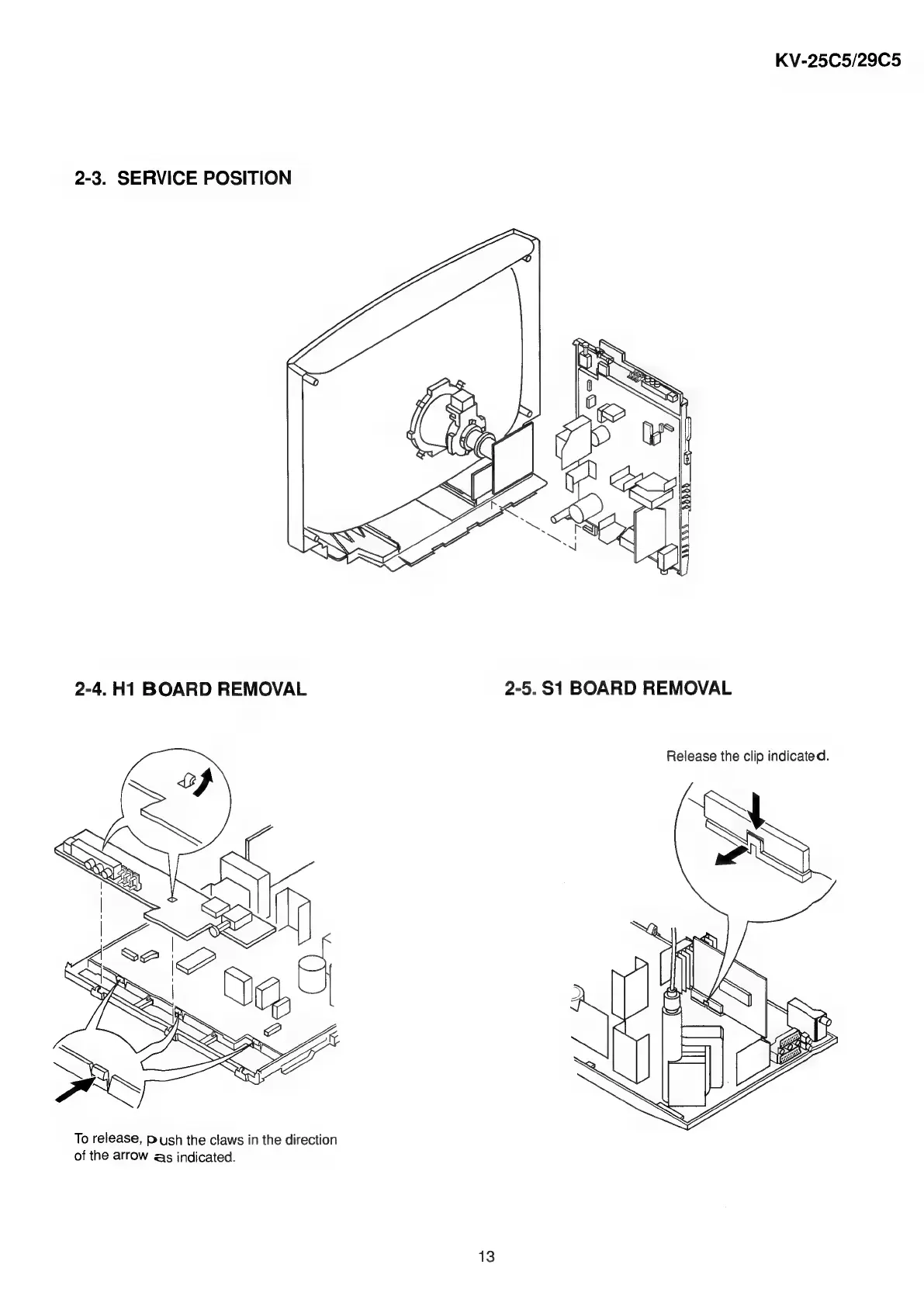 Sony TRINITRON KV-25C5A - Disassembly - Boards; H1 Board Removal; S1 Board Removal