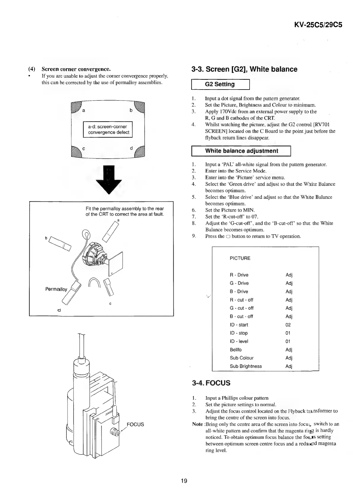 Sony TRINITRON KV-25C5A - Set-Up Adjustments - White Balance and Focus; White Balance; Focus
