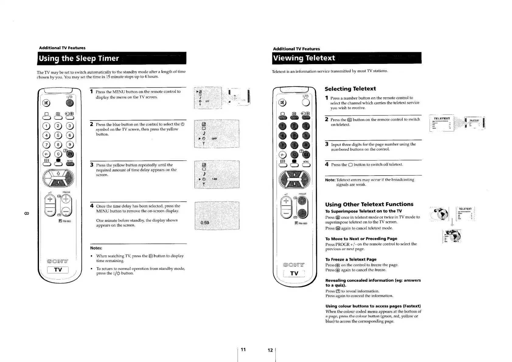 Sony TRINITRON KV-25C5K - Additional TV Features; Sleep Timer and Teletext Functions