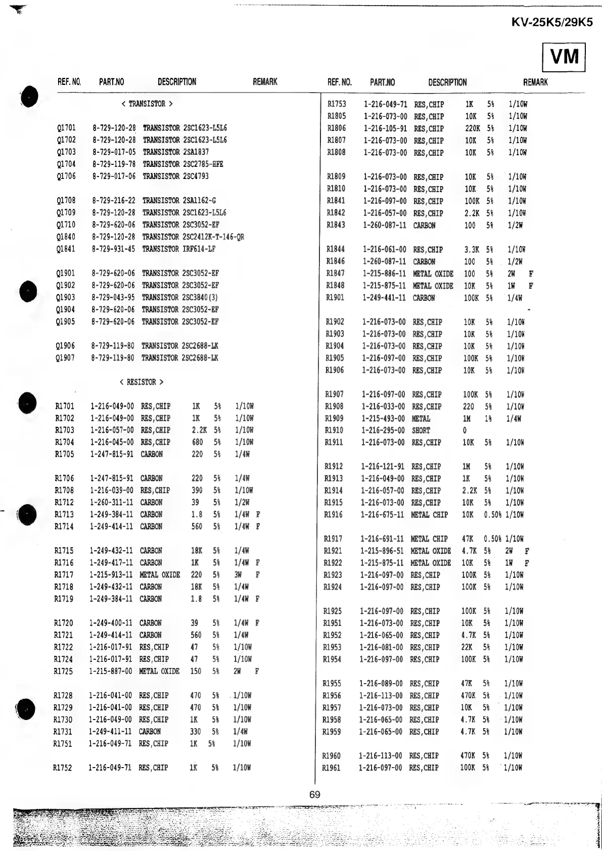 Sony Trinitron KV-25K5A - SECTION 7 ELECTRICAL PARTS LIST; Transistors; Resistors