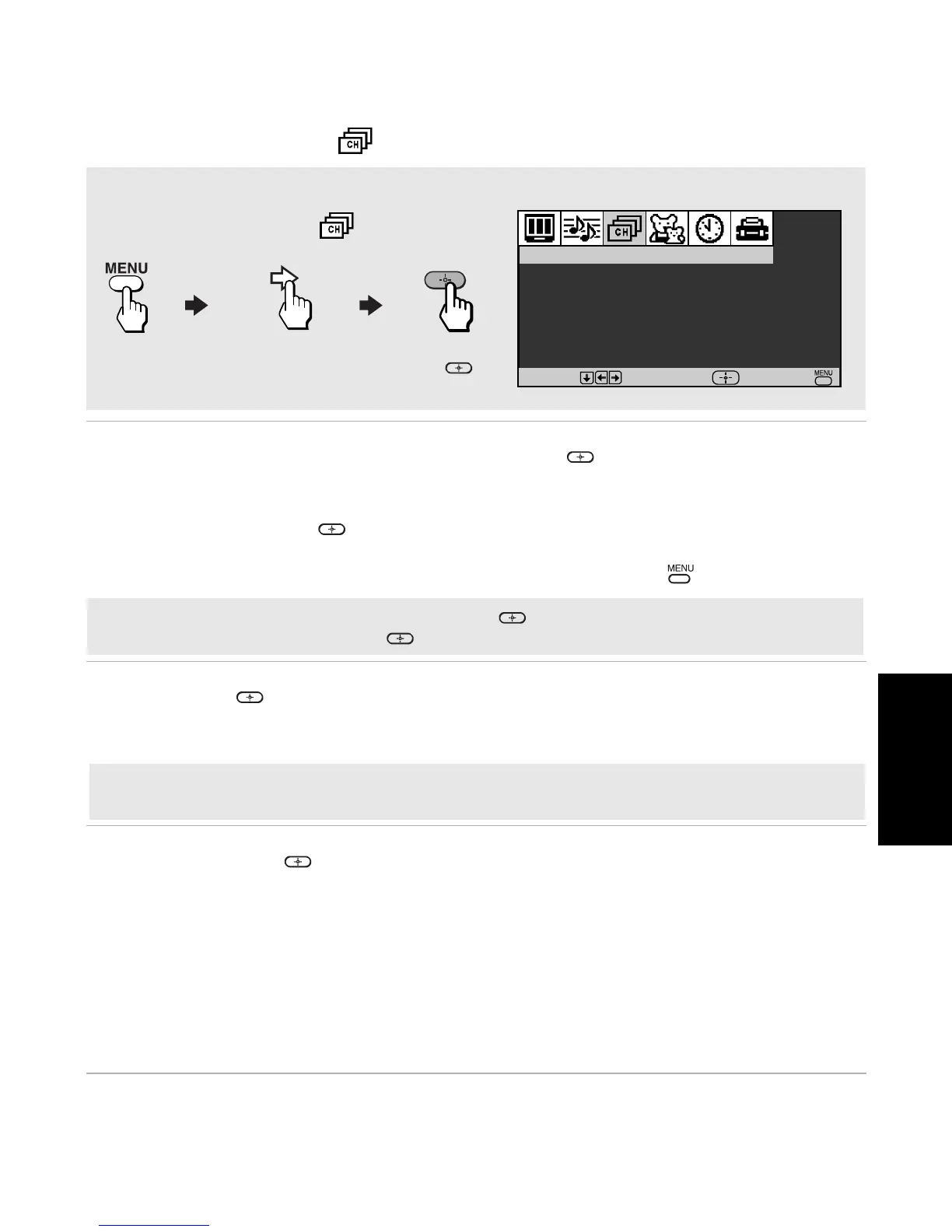 ✍ To use Favorite Channels, exit all menus and press . Press F or f to move the cursor to the