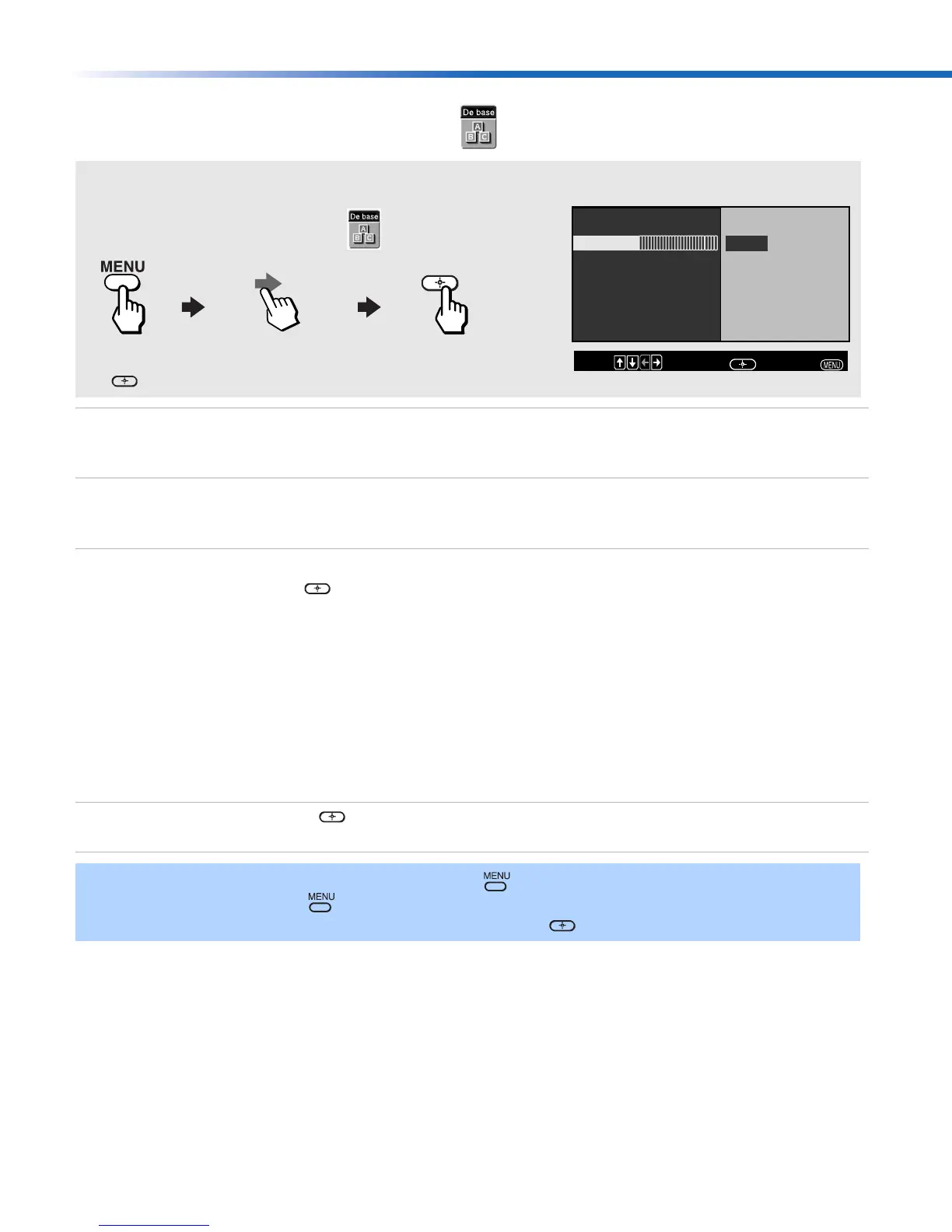 ✍ Si vous quittez le Menu de base en appuyant sur , seul le Menu de base s'affiche lorsque vous