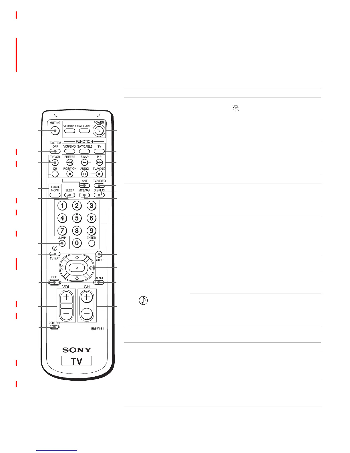 Sony Trinitron KV-27FV310 - Uso del Control Remoto y Funciones Descripción del Control Remoto