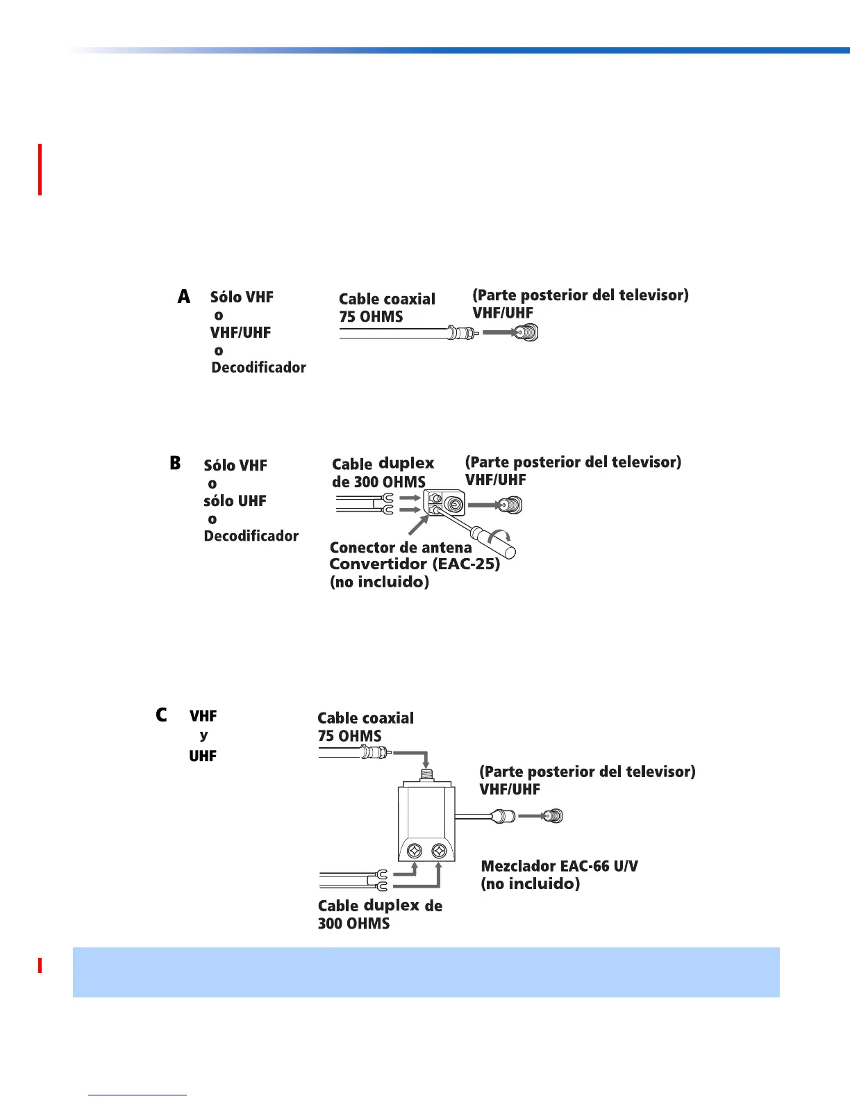 Esto le permite conectar su Televisor a ambas, a un sistema de Decodificador y a una antena