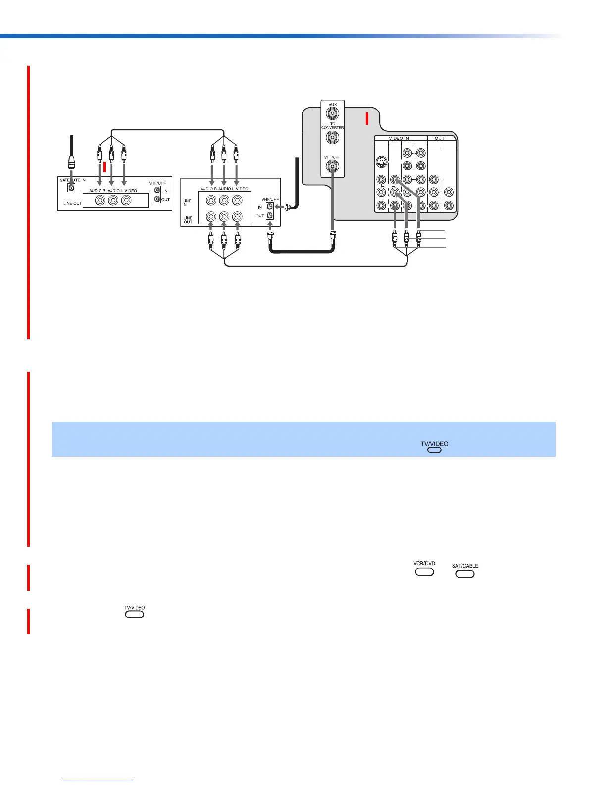 Conexión de un Televisor, Videograbadora y un Receptor de Satélite
