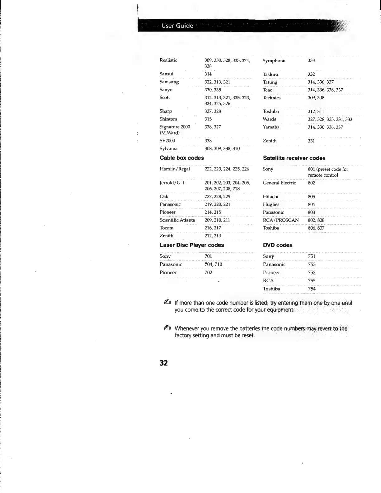 Sony Trinitron KV-27S46 - Laser Disc Player Codes