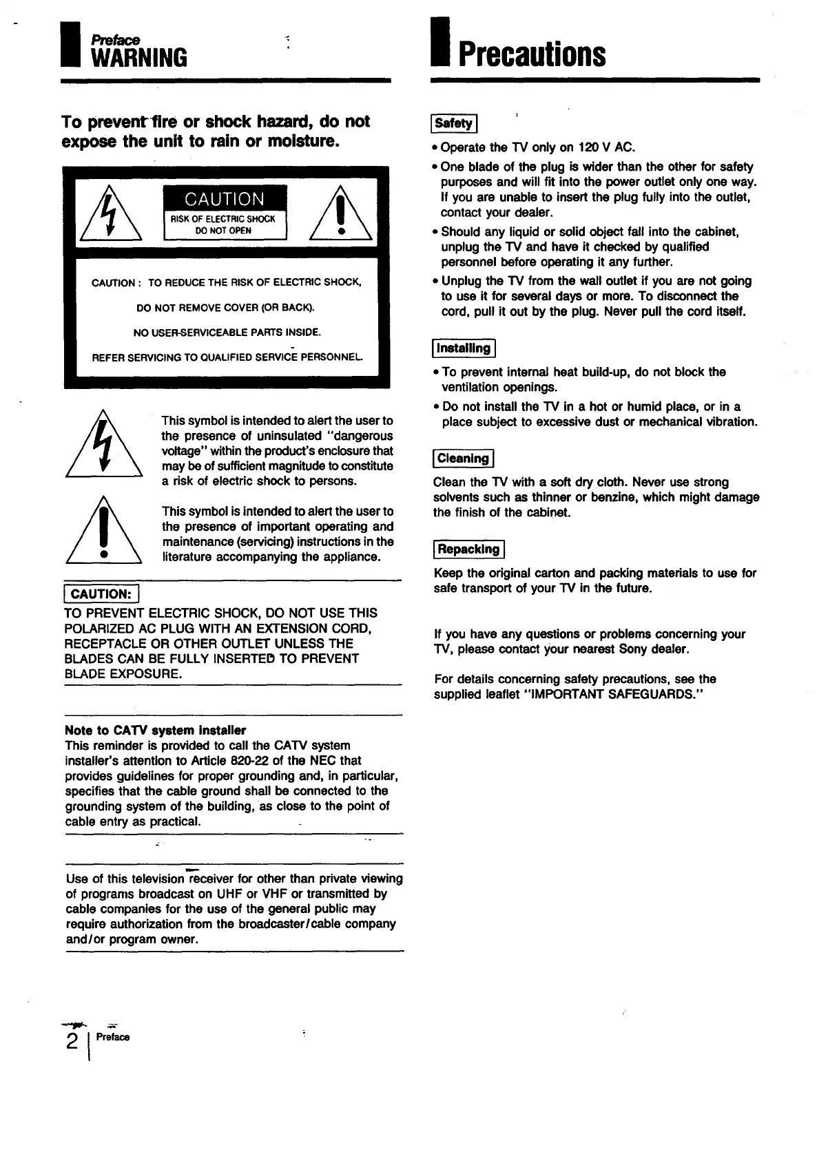 • Operate the TV only on 120 V AC.