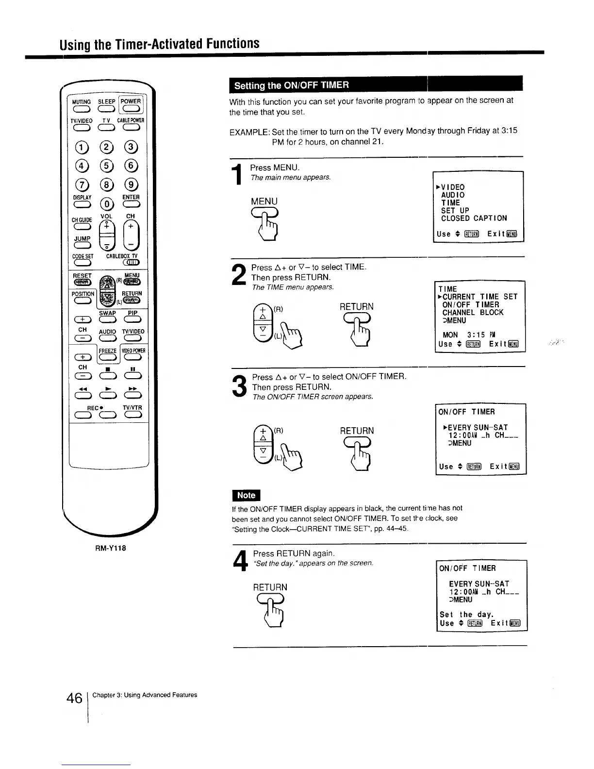 If the ON/OFF TIMER display appears in black, the current ti'ne has not
