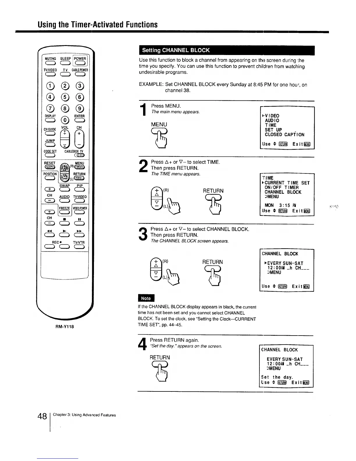 BLOCK. To set the clock, see "Setting the Clock---CURRENT