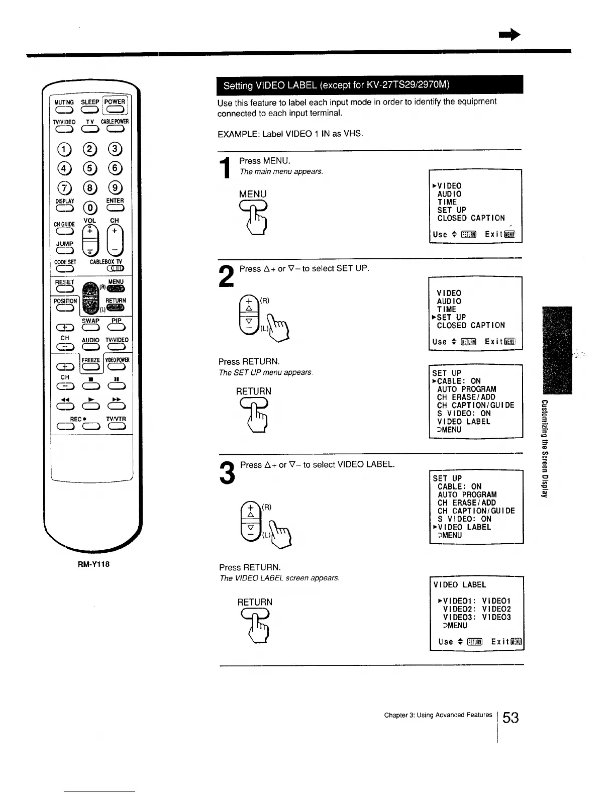 EXAMPLE: Label VIDEO 1 IN as VHS.
