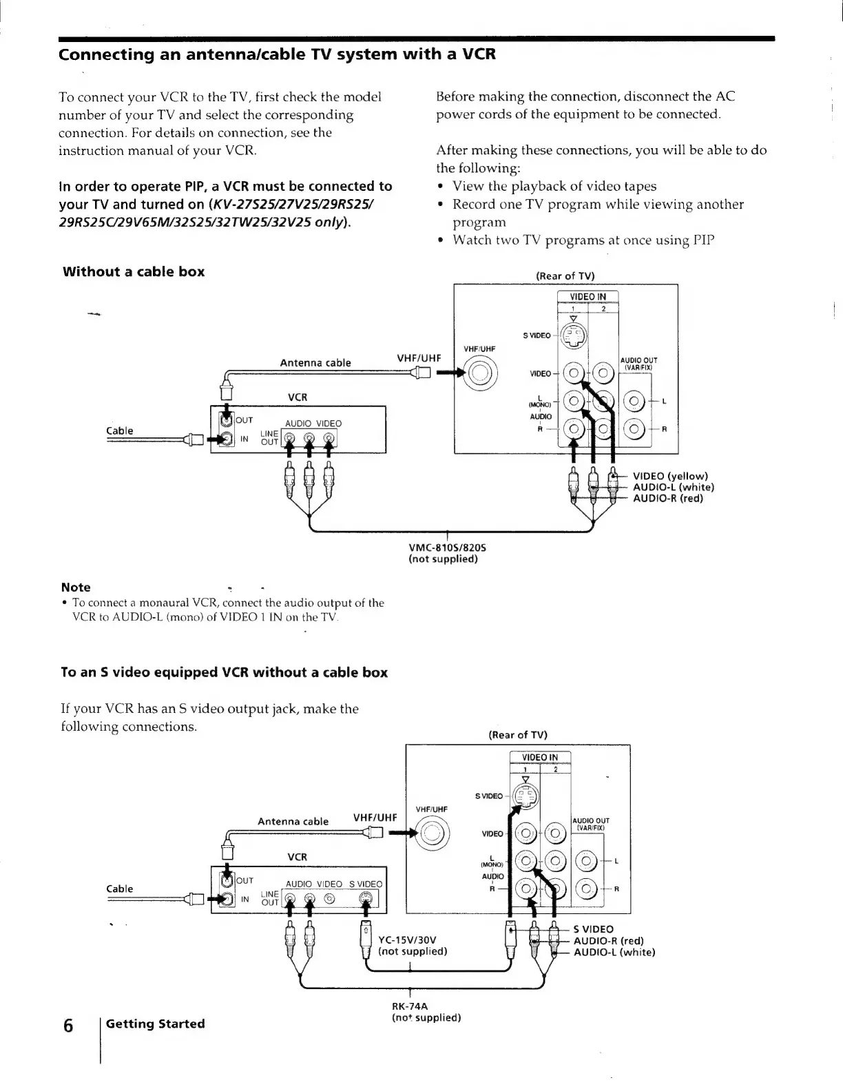 Sony Trinitron KV-27V35 - Connecting Antenna;Cable TV With VCR
