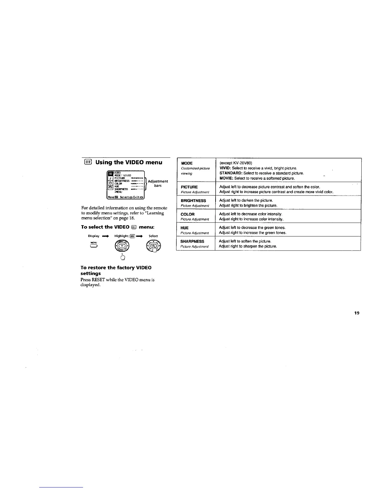 PICTURE Adjust left to decrease picture contrast and soften the color.