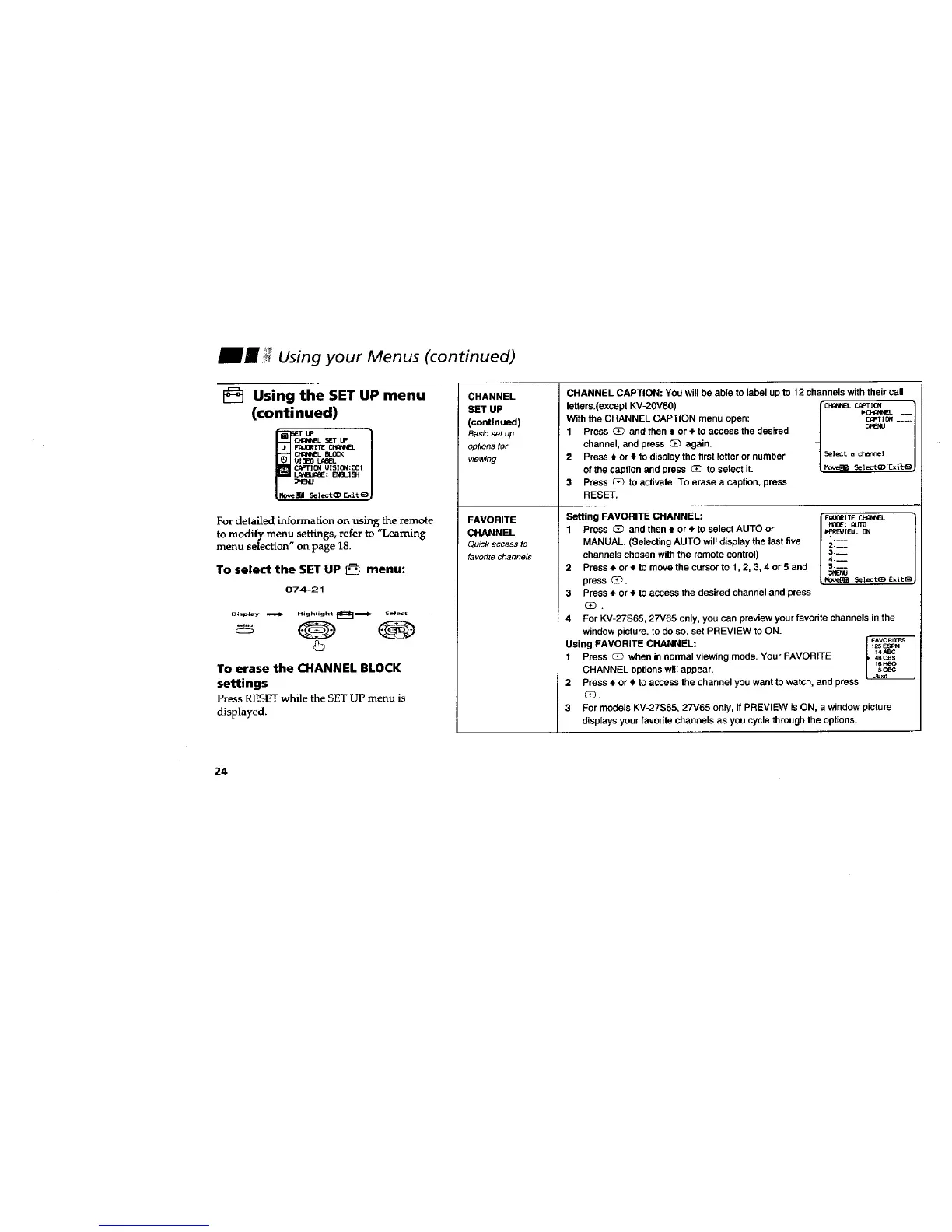4 For KV-27S65, 27V65 only, you can preview your favodte channels in the