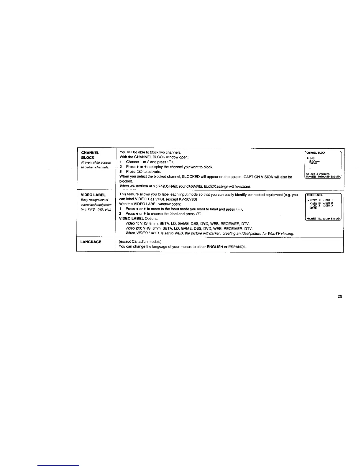 can label VIDEO 1 as VHS). (except KV-20VS0)