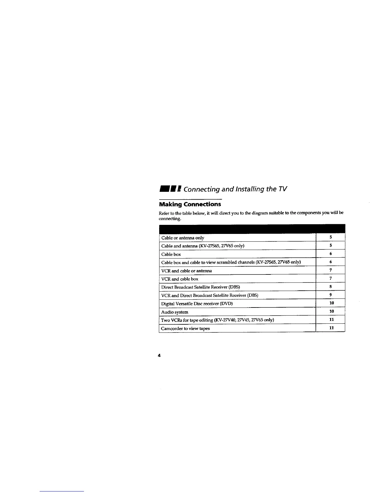 Cable box and cable to view scrambled channels (KV-27S65, 27V65 only) 6