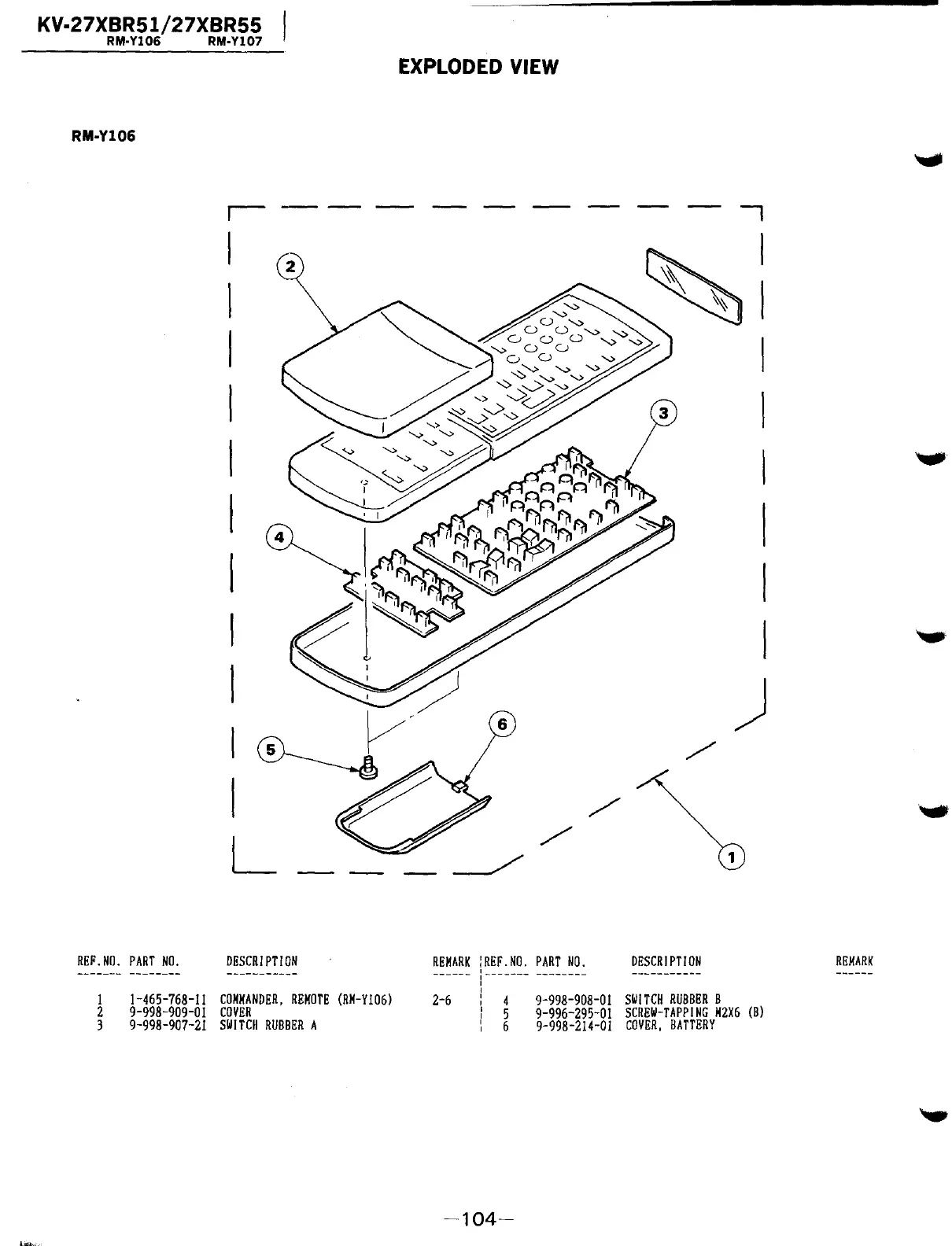 Sony Trinitron KV-27XBR51 - RM-Y106 Exploded View