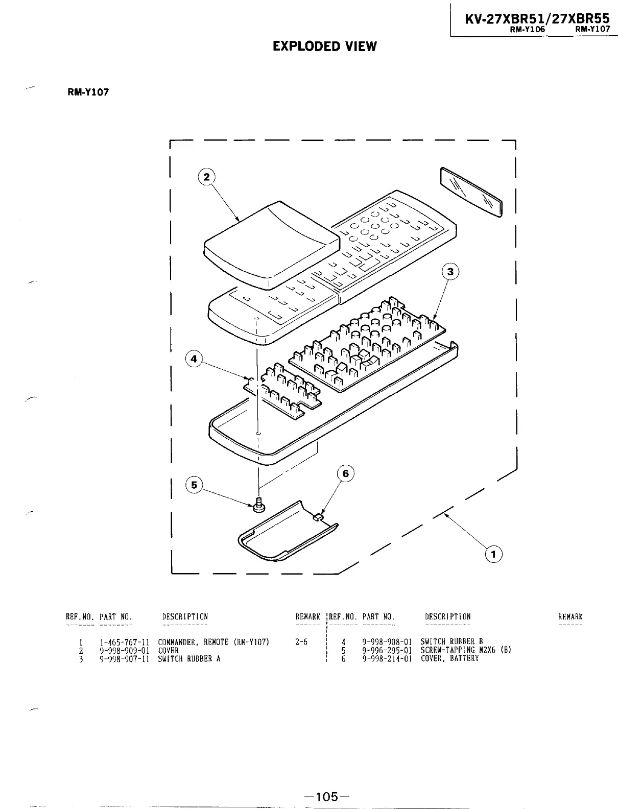 Sony Trinitron KV-27XBR51 - RM-Y107 Exploded View