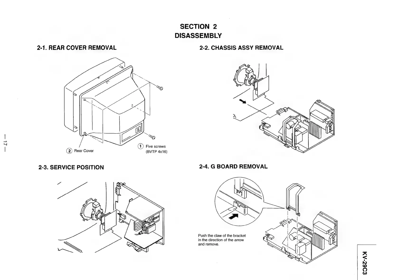 Sony TRINITRON KV-29C3A - Disassembly; Rear Cover Removal; Chassis Assy Removal; Service Position