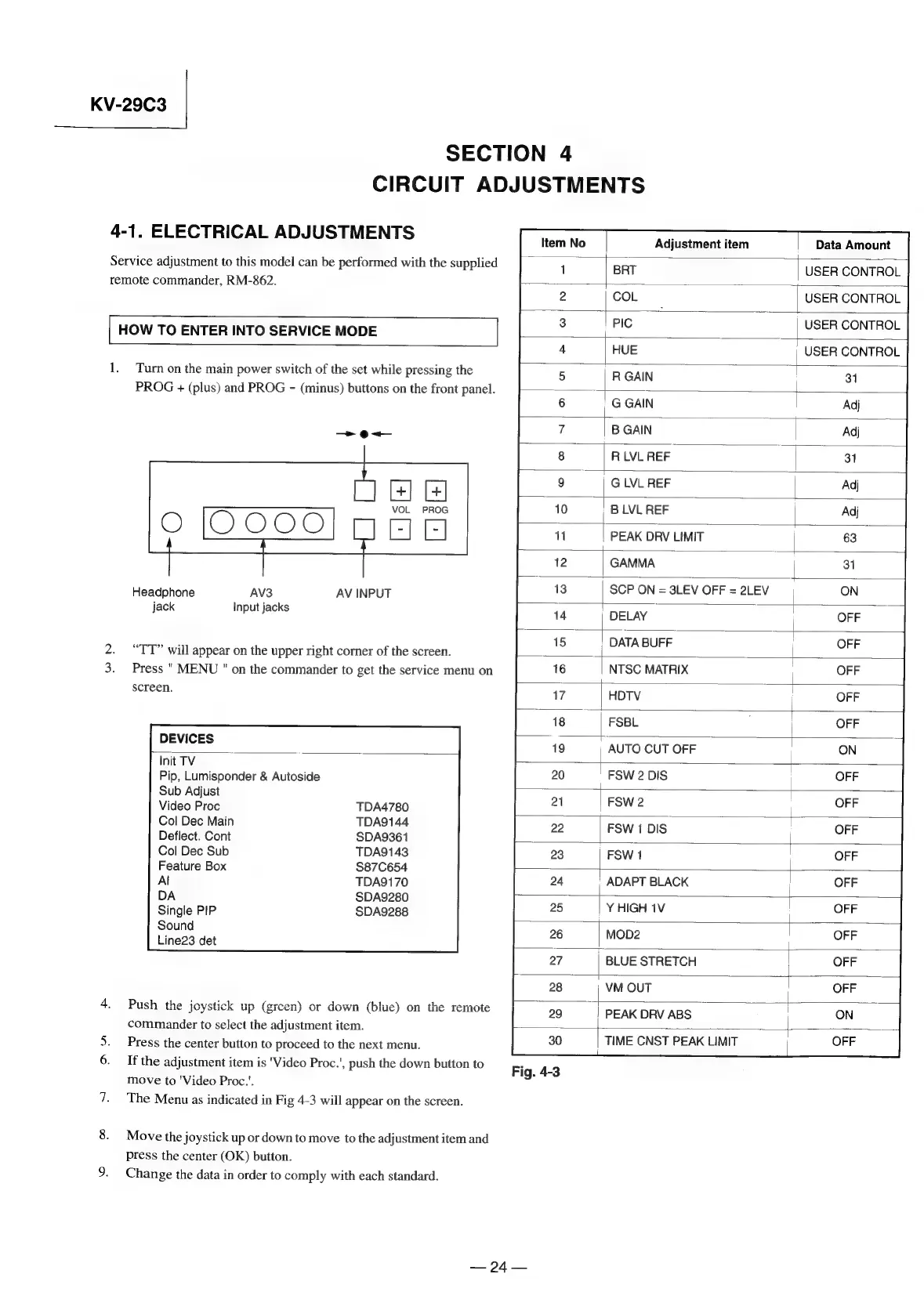 Sony TRINITRON KV-29C3A - Circuit Adjustments