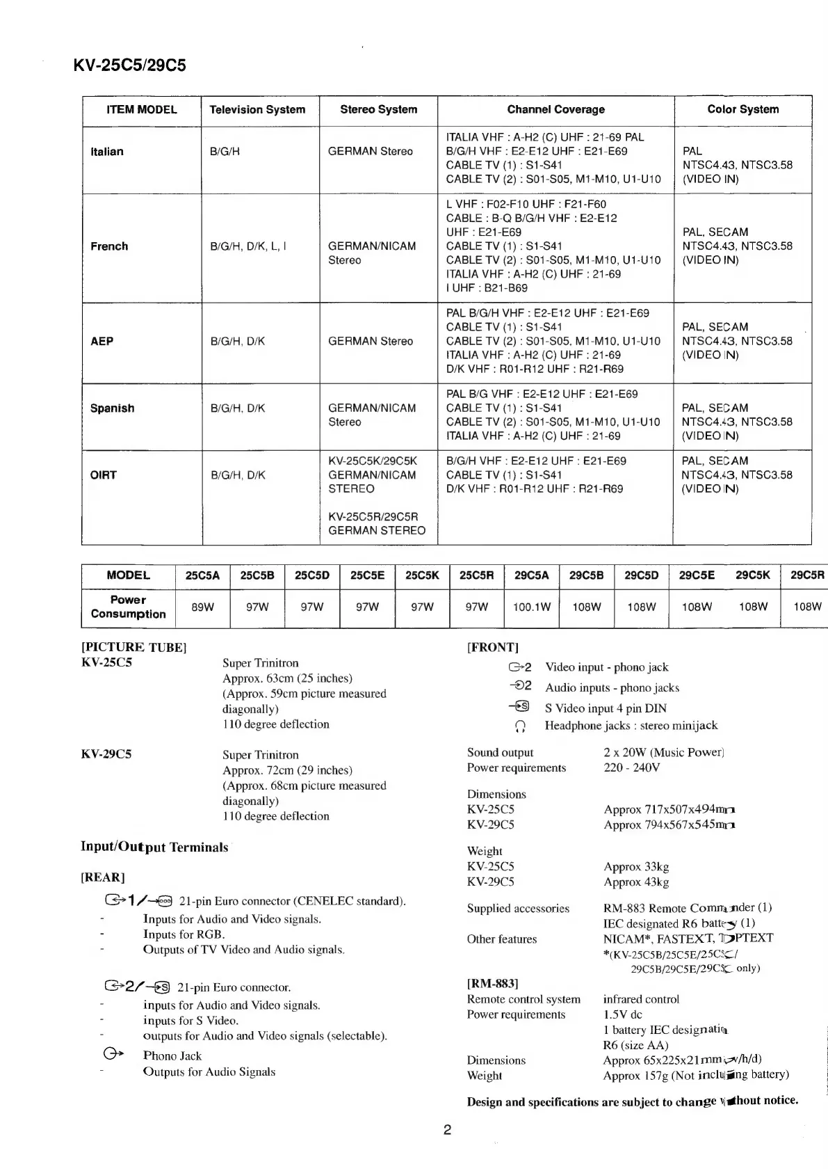 Sony TRINITRON KV-29C5A - Page 2