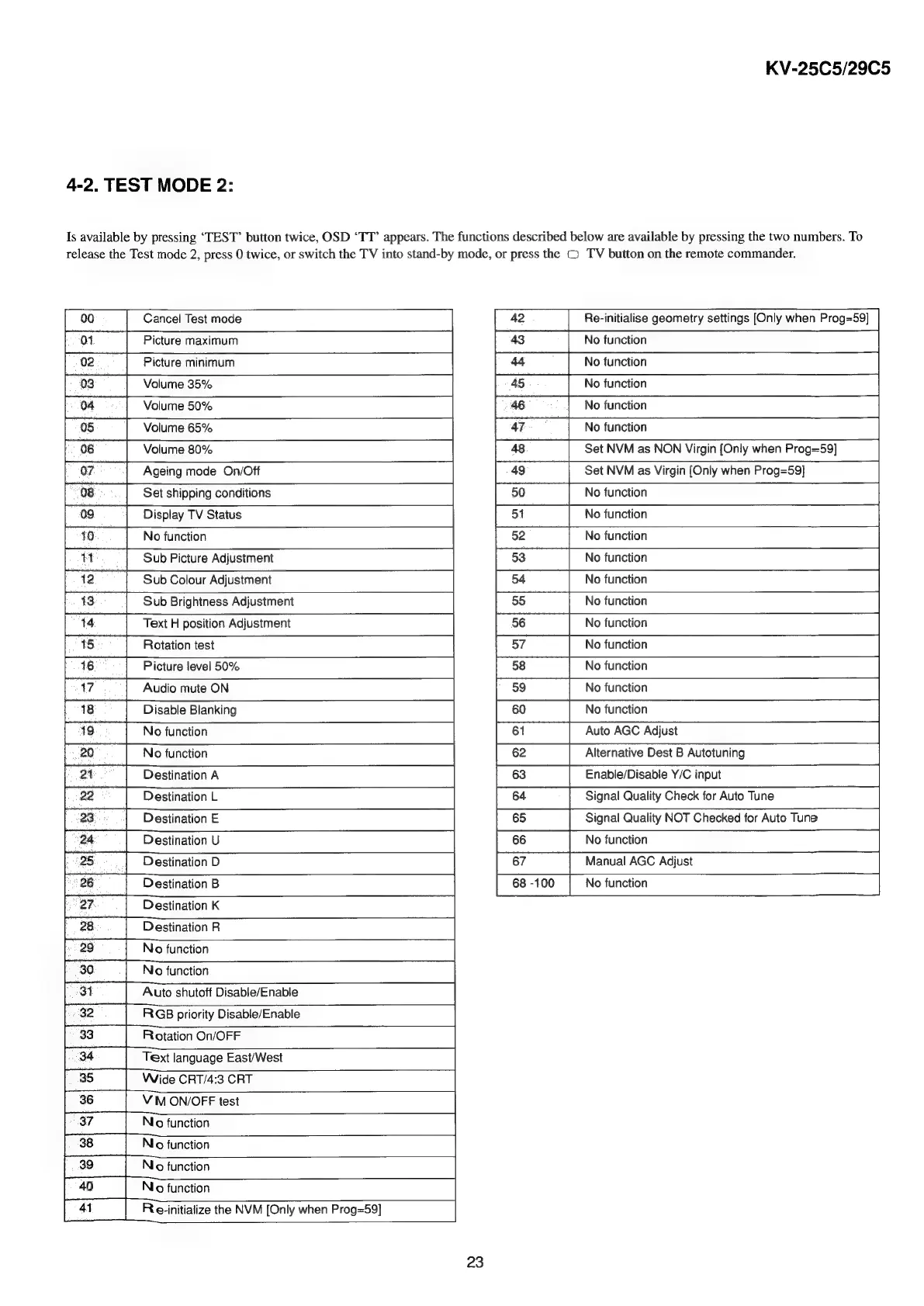 Sony TRINITRON KV-29C5A - Test Modes and Self-Diagnosis