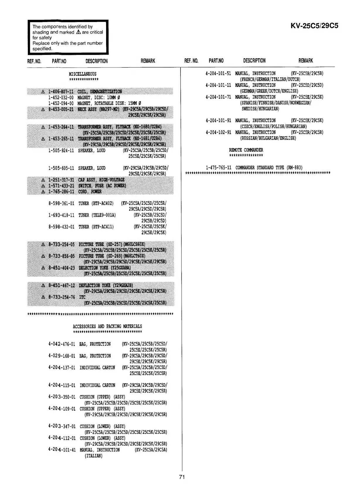 (KV-29C5A/29C5B/29C5D/29C5E/29C5K/29C5R)