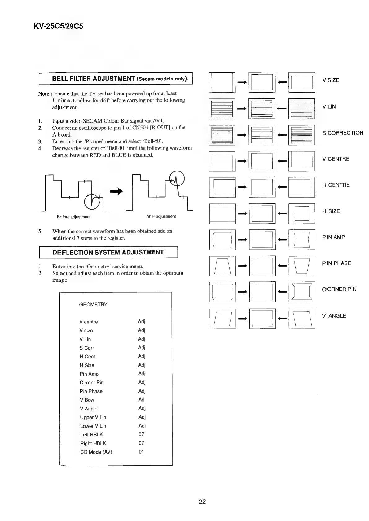 Sony TRINITRON KV-29C5D - System and Deflection Adjustments; Bell Filter and Deflection System Adjustments