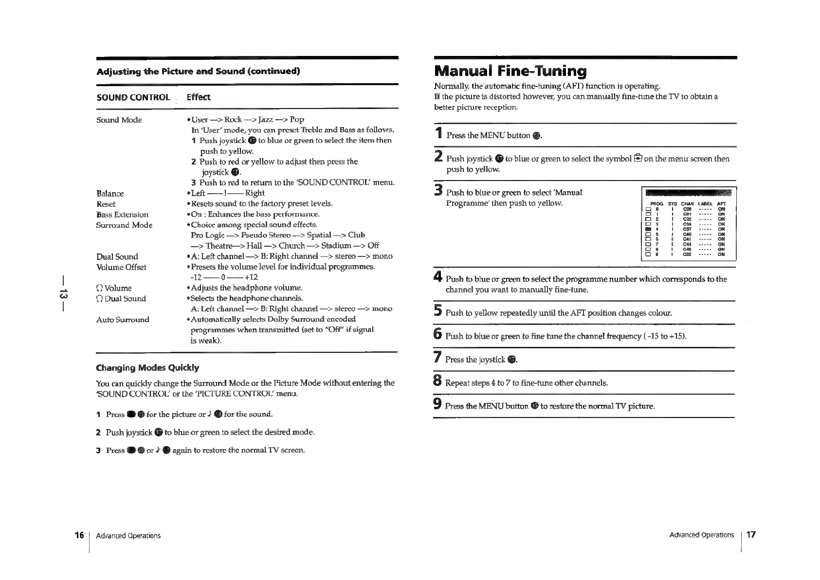 Sony Trinitron KV-29F3A - AUDIO AND TUNING ADJUSTMENTS; Manual Fine-Tuning Procedure