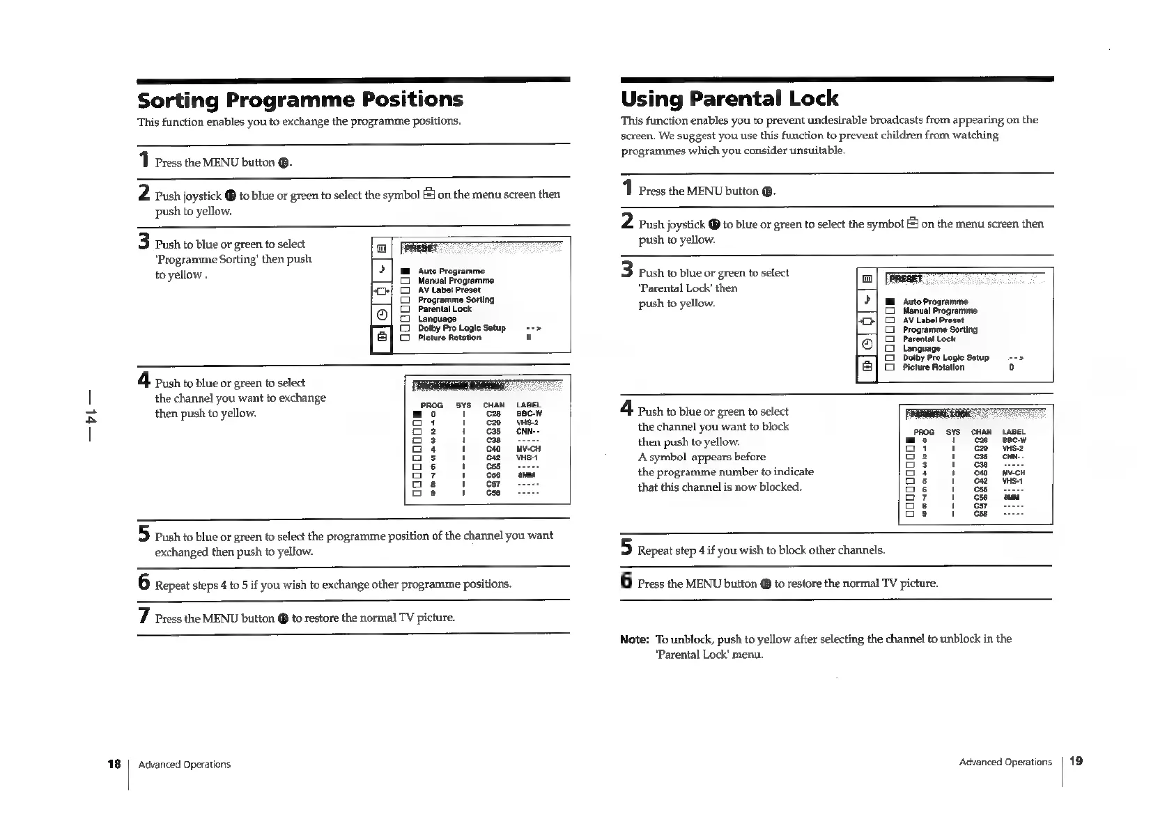 Sony Trinitron KV-29F3A - PROGRAMME AND CONTENT MANAGEMENT; Parental Lock Functionality